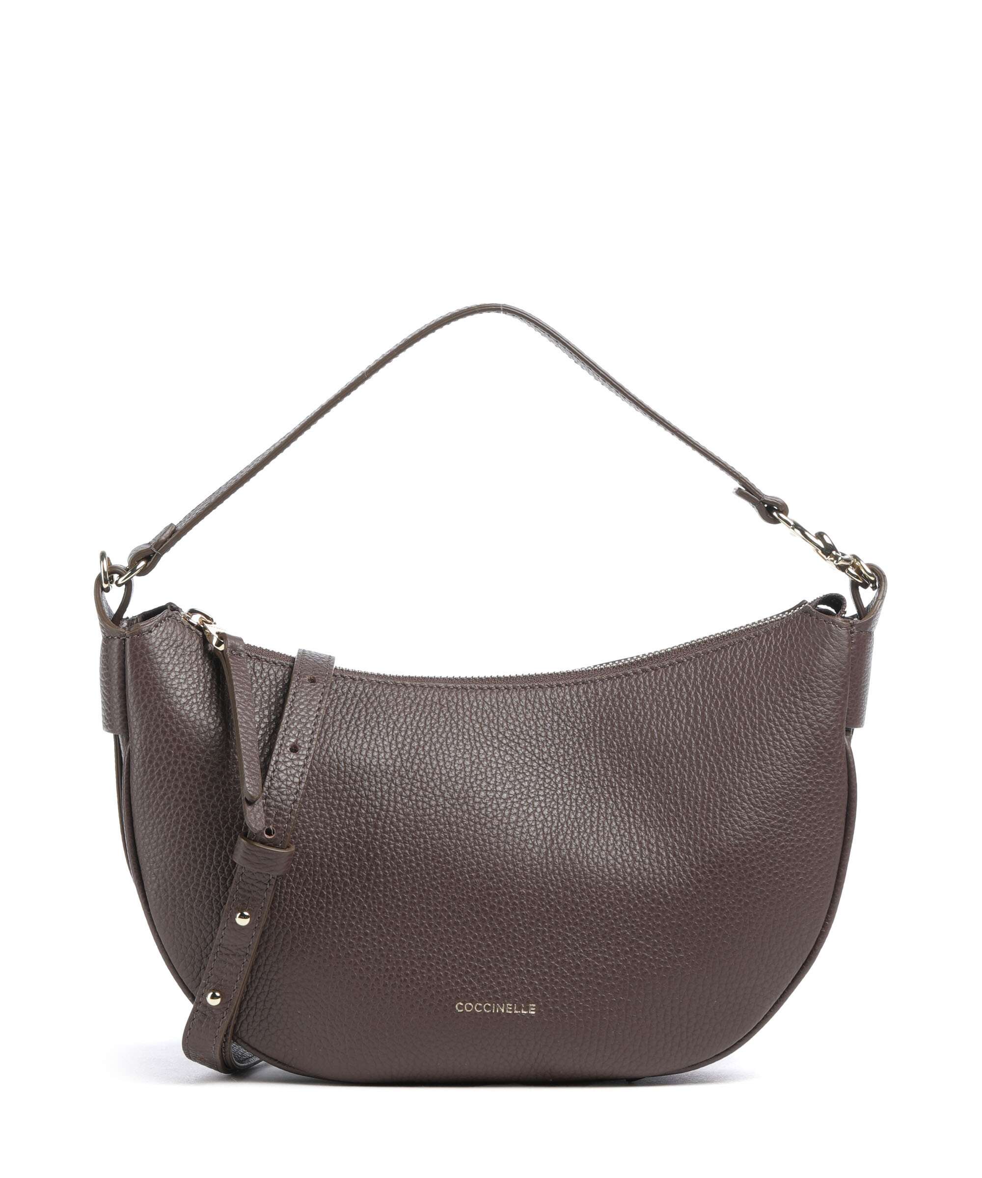C-Easy Schultertasche genarbtes Leder brunette