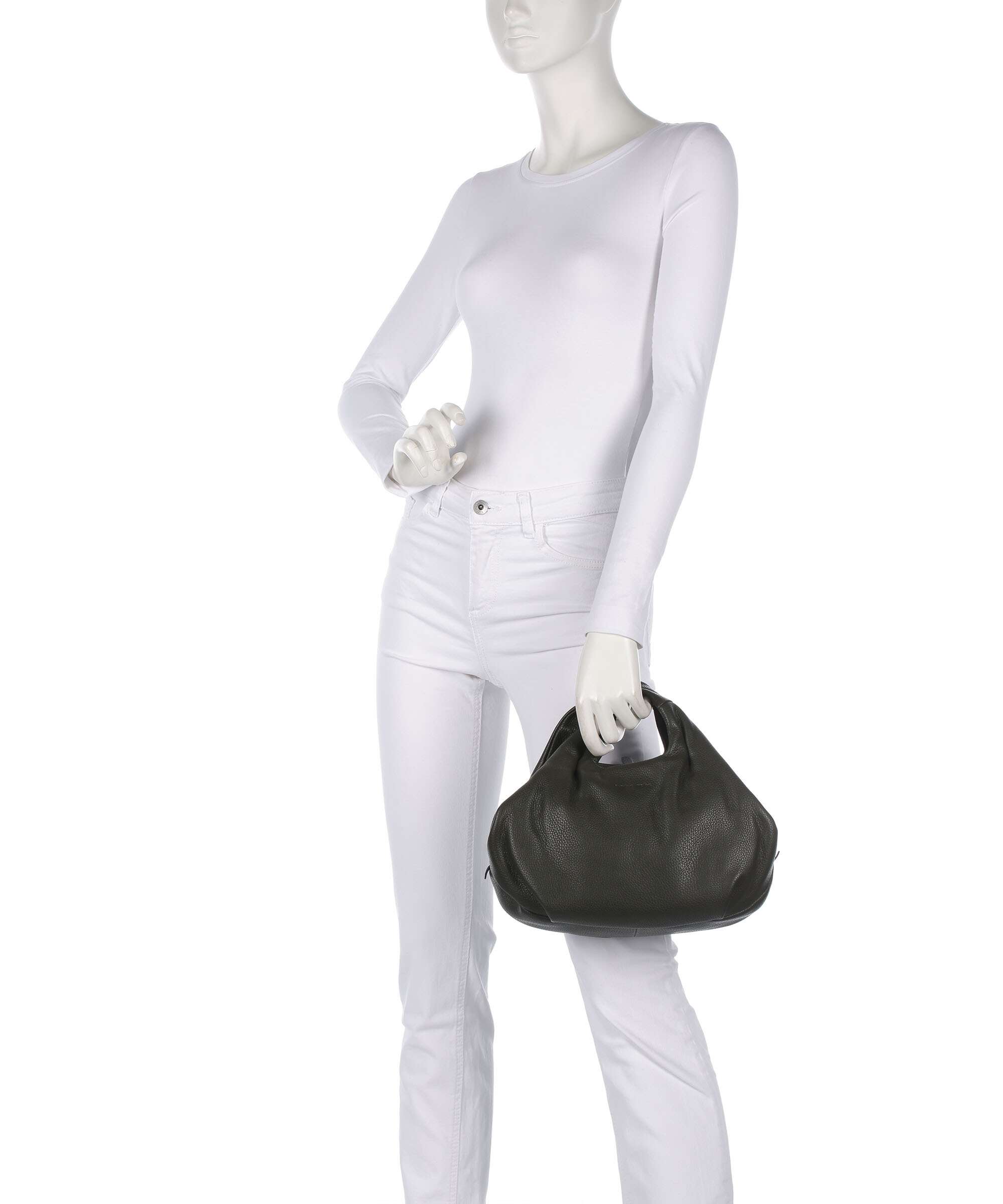 From elegant top-handle bags to trend-setting trapeze bags: handbags come in an impressive variety of styles. The bowling bag features a rounded silhouette and sporty flair, making it perfect for casual outfits. In contrast, the top handle bag stands out with its prominent flap, adding a refined and classic touch. Particularly fashionable is the trapeze bag with its flared inner lining, often styled in contrasting colours or a mix of materials. For a laid-back look, bucket bags with long shoulder straps are a go-to choice. Subtle leather handbags, on the other hand, work seamlessly with businesswear, perfectly complementing a professional appearance. Thanks to this rich selection of shapes and styles, there’s a handbag to match every setting.